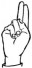 На ћирилици написано БУДИМИР УНИЋ састоји се из 11 слова [?]. Исписано ћириличном једноручном азбуком за глувонеме: